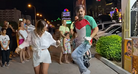 İşte Çılgın Dondurmacının kendisini ziyarete gelen bazı turistler ile muhteşem dansları, işte şov,