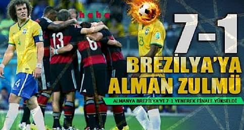 Tarih 8 Temmuz 2014 Brezilya’da düzenlenen Dünya Şampiyonası Yarı Final maçında BRASIL and GERMANY karşı karşıya geldi ve maç sonucu dünyadaki bütün sürprizleri geride bıraktı. Normalde maç zorlu geçecek olsa da Brezilya’da sambacıların kendi sahasında olduğu için Brezilyanın zor maçı kazanacağı bekleniyordu. Fakat Almanlar 45 dakika bile sabredemediler ve ilk yarım saatte tarihi skoru dünyaya müjdelediler.